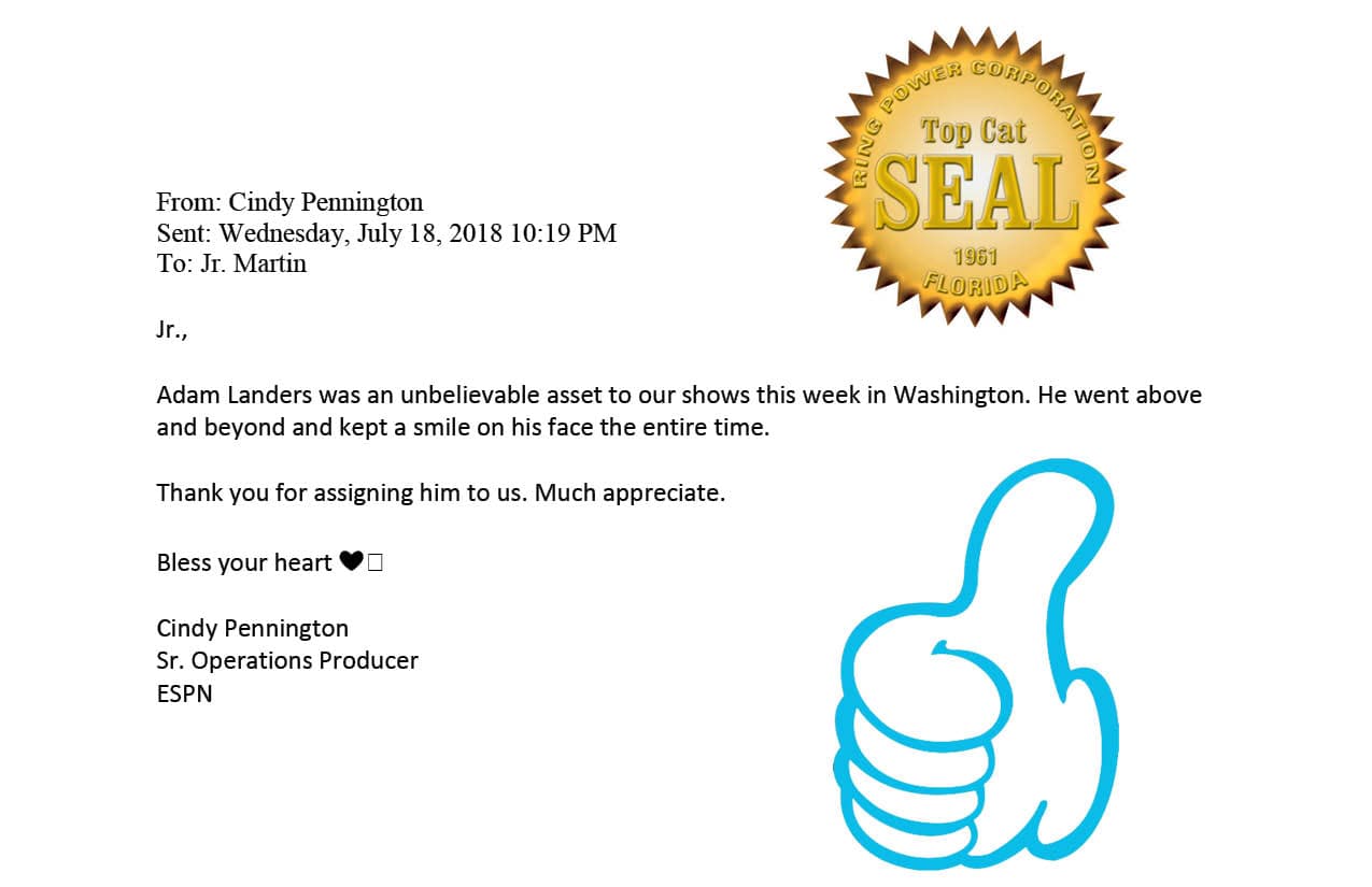 Hats off to Adam Landers (Rhode Island ES Tech I) for going above and beyond to exceed his customer’s expectations! For Adam’s dedication to customer loyalty, he has earned his first Top Cat gold seal!