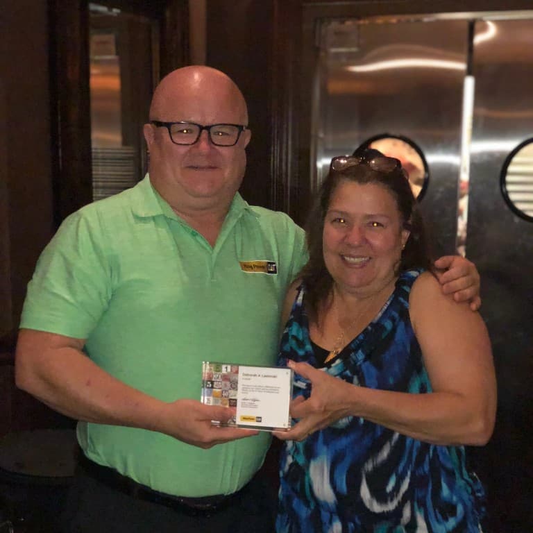 Deborah Lashinski (Ocala Facilities Team Lead), right, receiving her award from James Byrne for completing 10 years of service June 16.