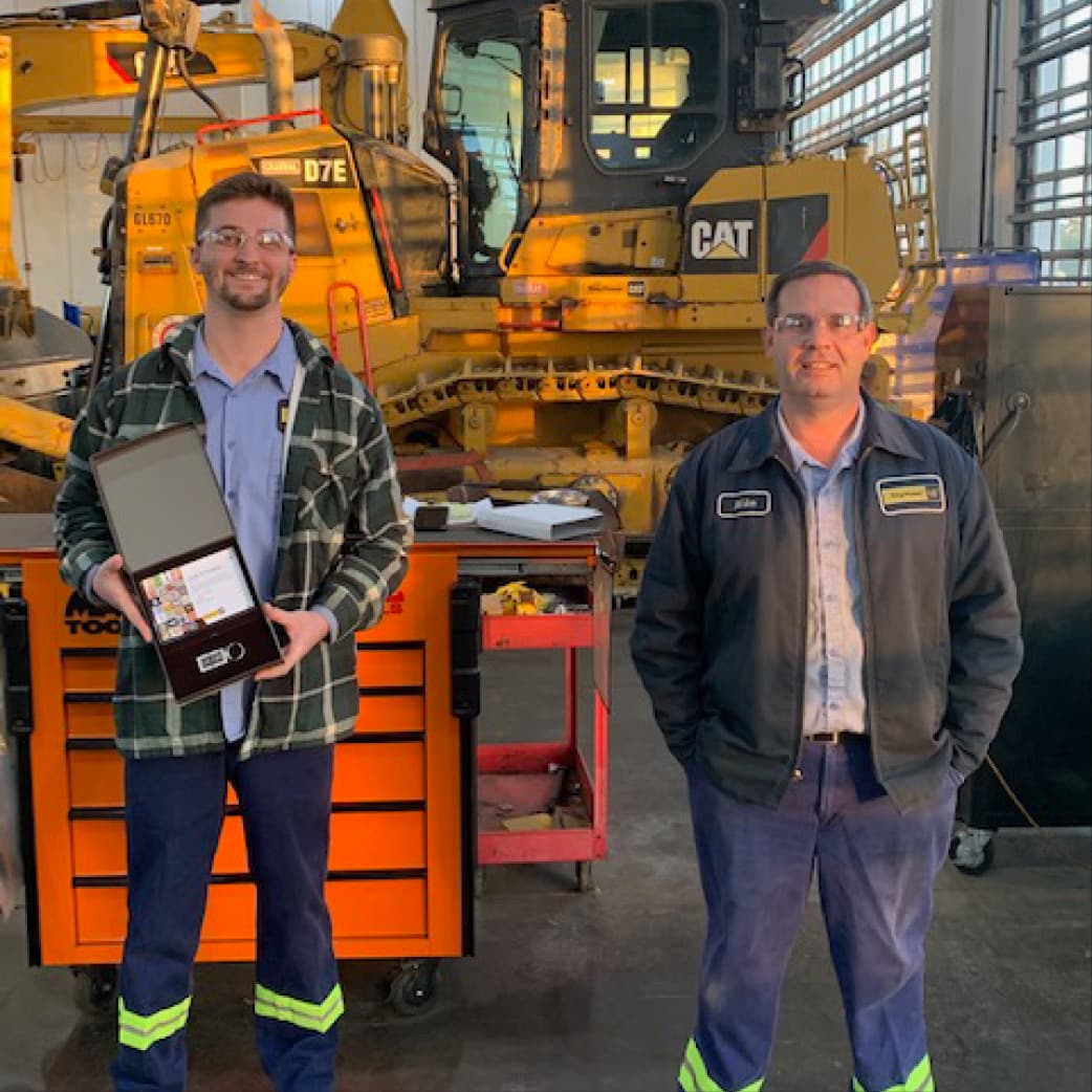 Daryl Gandy (WCC Undercarriage & Paint Shop Foreman), right, receiving his award from Chris Green for completing 35 years of service Nov. 25.