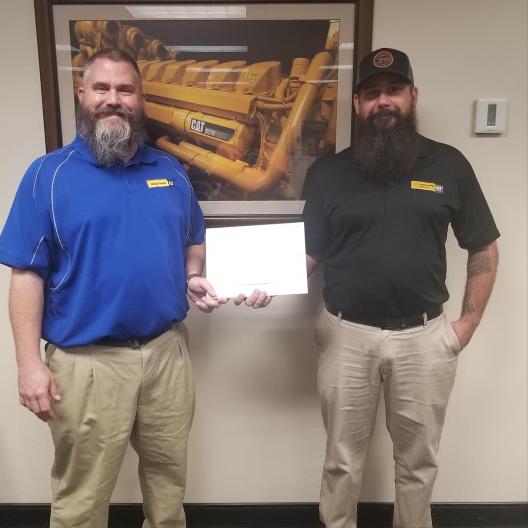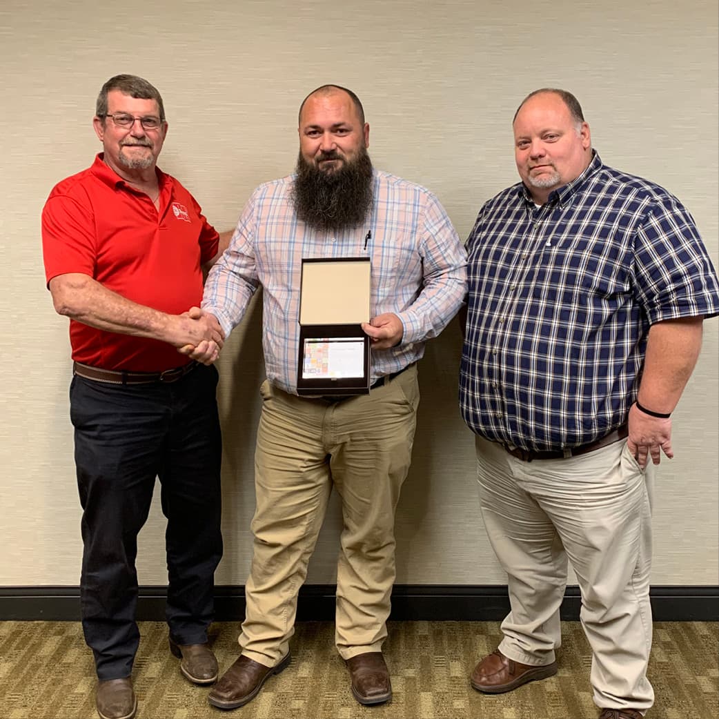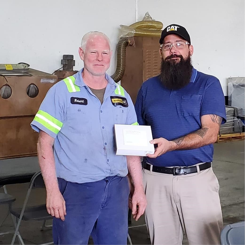 Nicholas Thomson (Ocala CRS Service Tech II), right, receiving his award from Kevin McElgun for completing 1 year of service July 1.