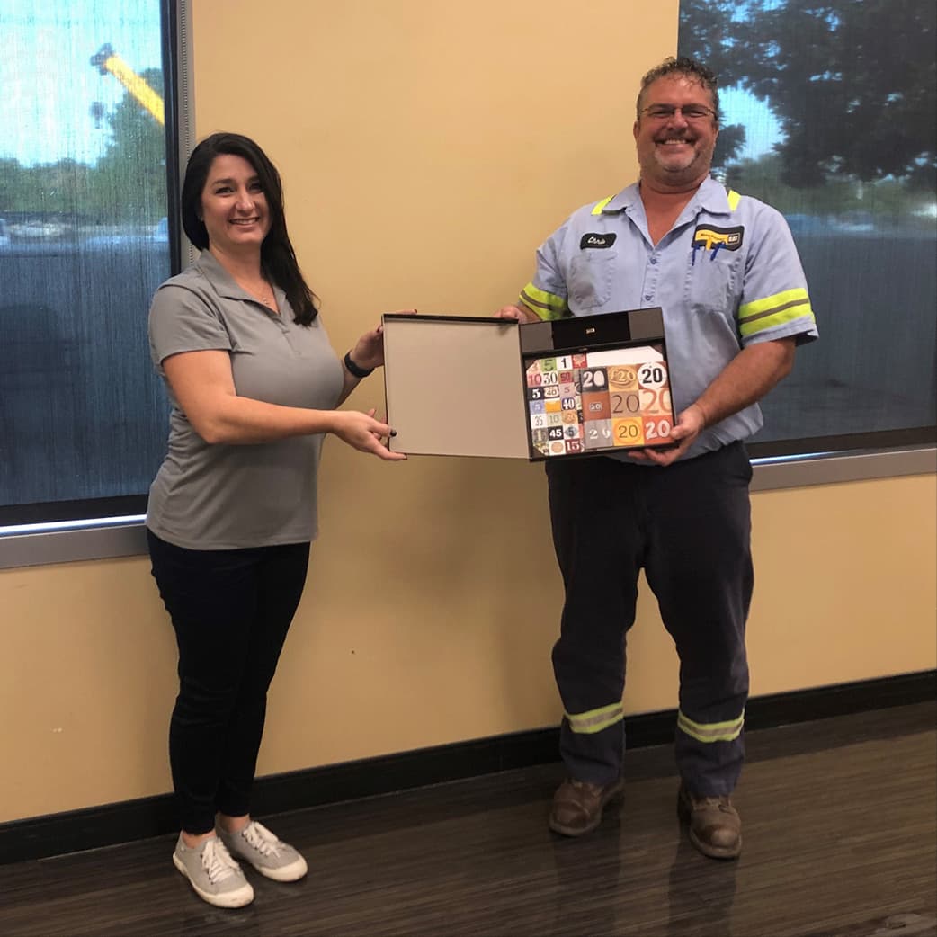 Ashley Nobles (Tampa Shipping & Receiving Associate), right, receiving her award from Todd Sutter for completing 1 year of service on Dec. 30.