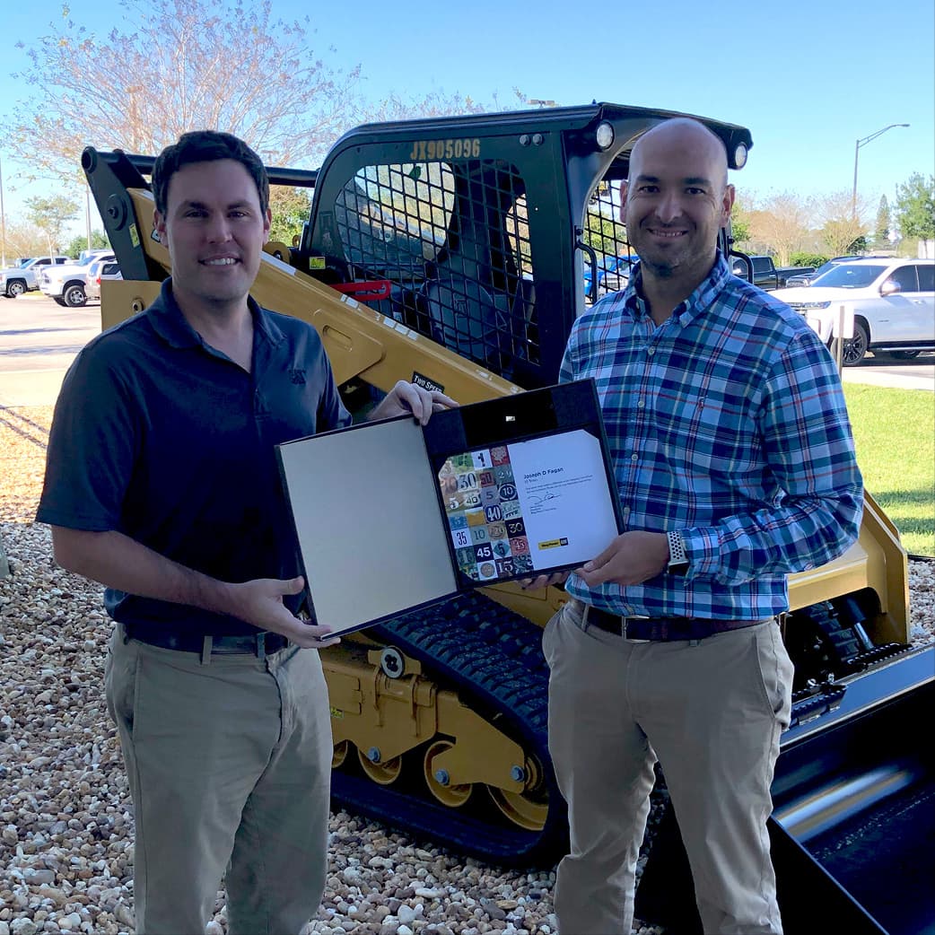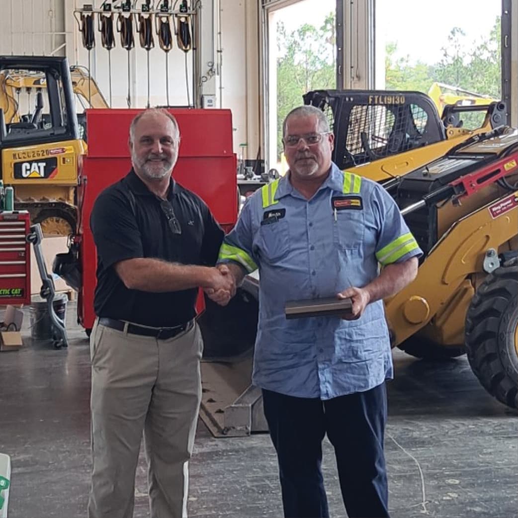 Lance Guyer (Tampa Inside Parts Sales Advisor), right, receiving his award from Armando Rosado for completing 25 years of service Oct. 20.