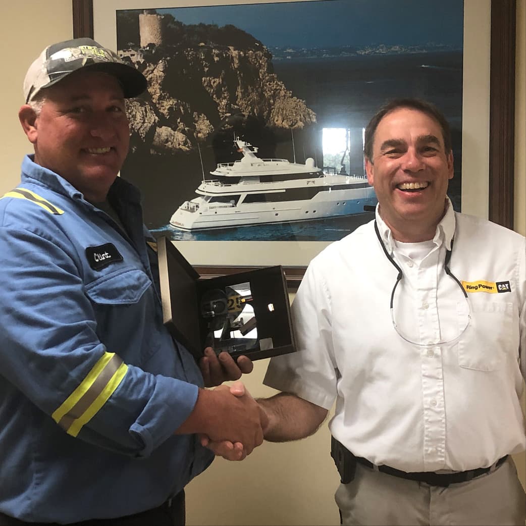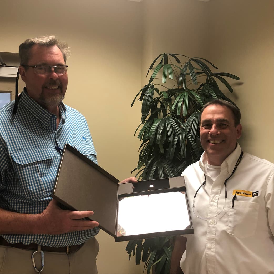 Lonnie Teeling (Tampa Surface Mining Service Manager), right, receiving his award from Dan Patin for completing 25 years of service Nov. 6.
