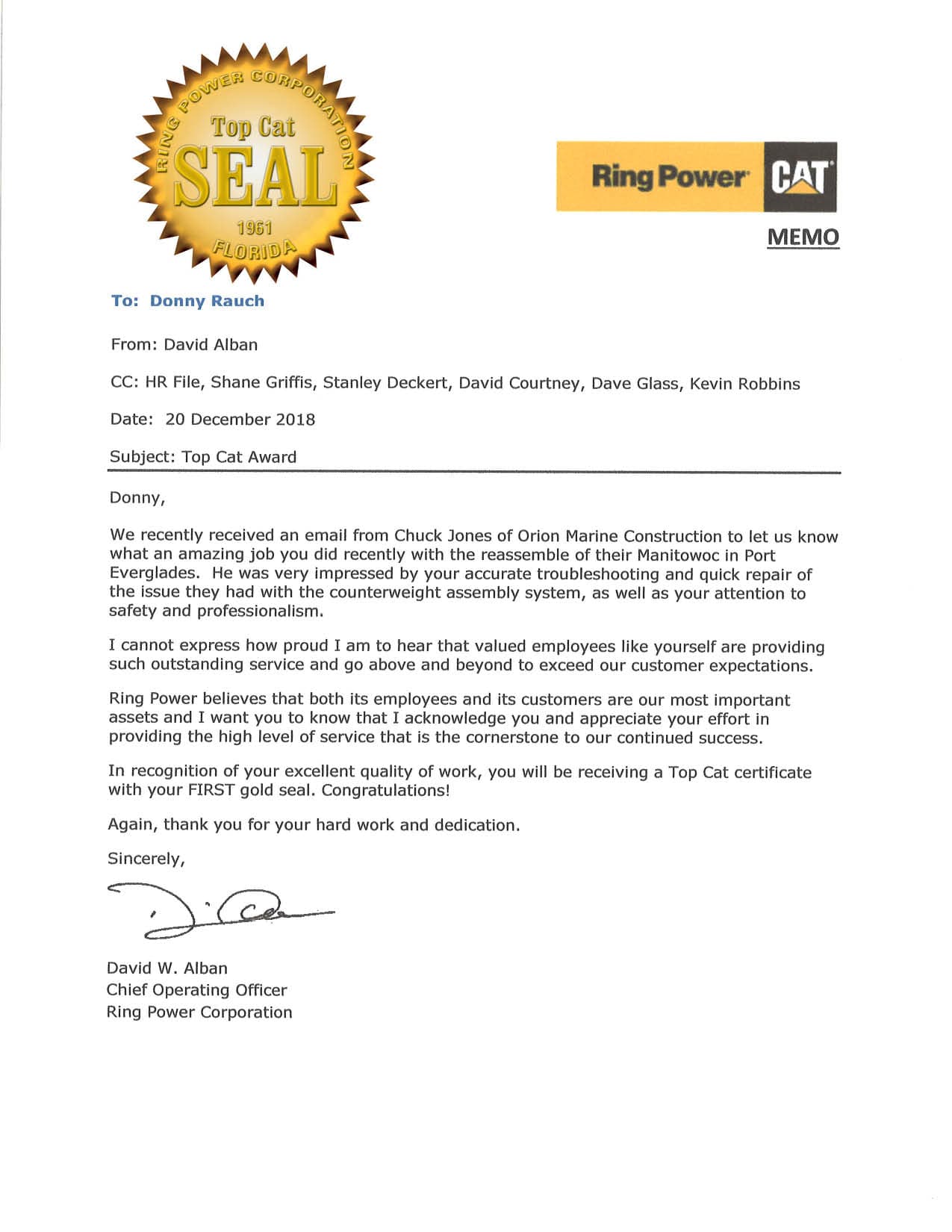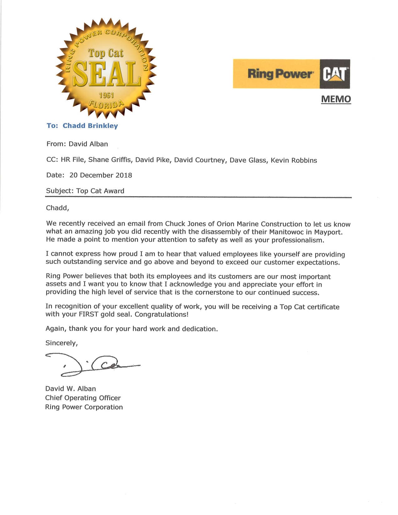 ”Ring Power is fortunate to have a strong, young group of leaders, prepared to position the company to keep pace with the ever-changing business climate and rapidly evolving technology, today and into the future, said Randy. “In concert with Caterpillar, David will focus on growing the company, continue to provide excellent service, and maintain customer relationships.”
