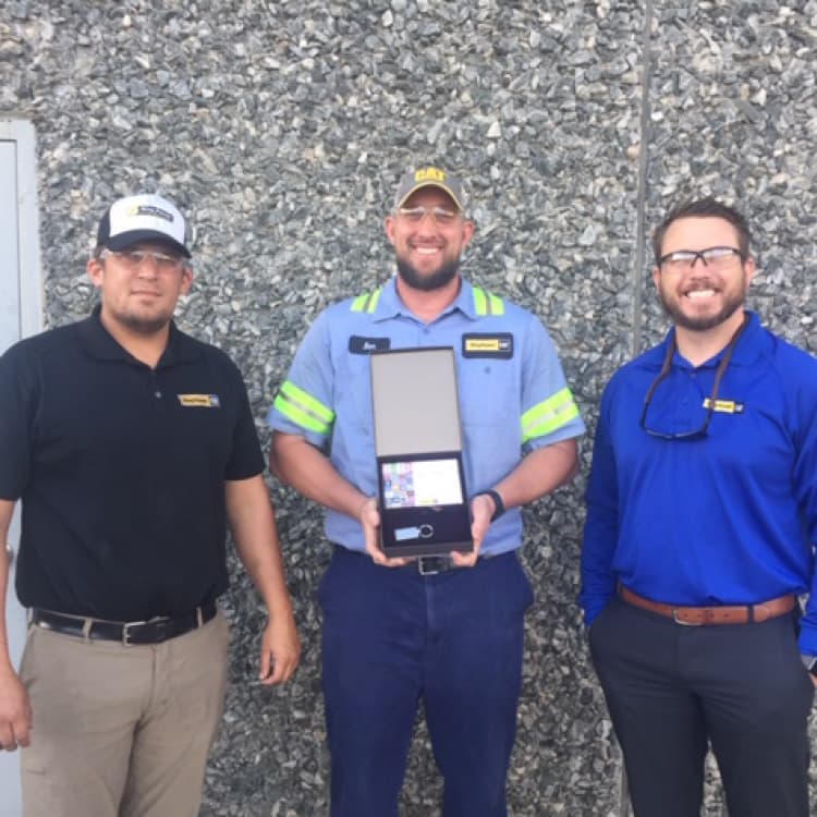 Sam Chapman (Tampa Generator Rental Support Rep.), center, receiving his award from Mike Lugo and Sam King for completing 1 year of service March 18.