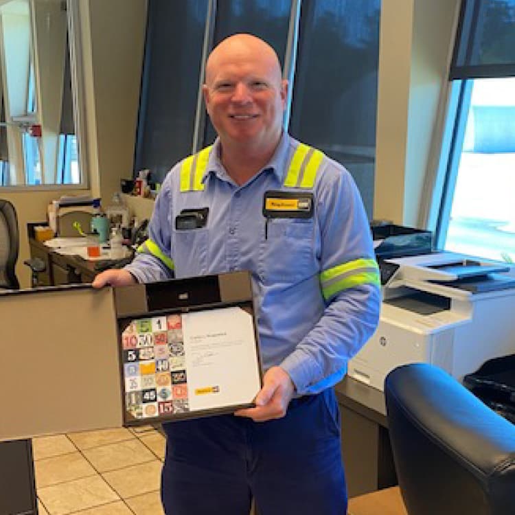 Scott Gouse (Tampa Transport Driver), receiving his award for completing 5 years of service April 6.