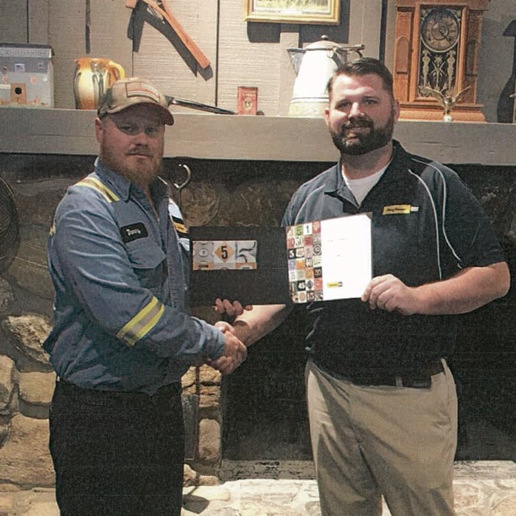 Curtis McGeehen (Brooksville Tranport Driver), receiving his award for completing 15 years of service April 25.