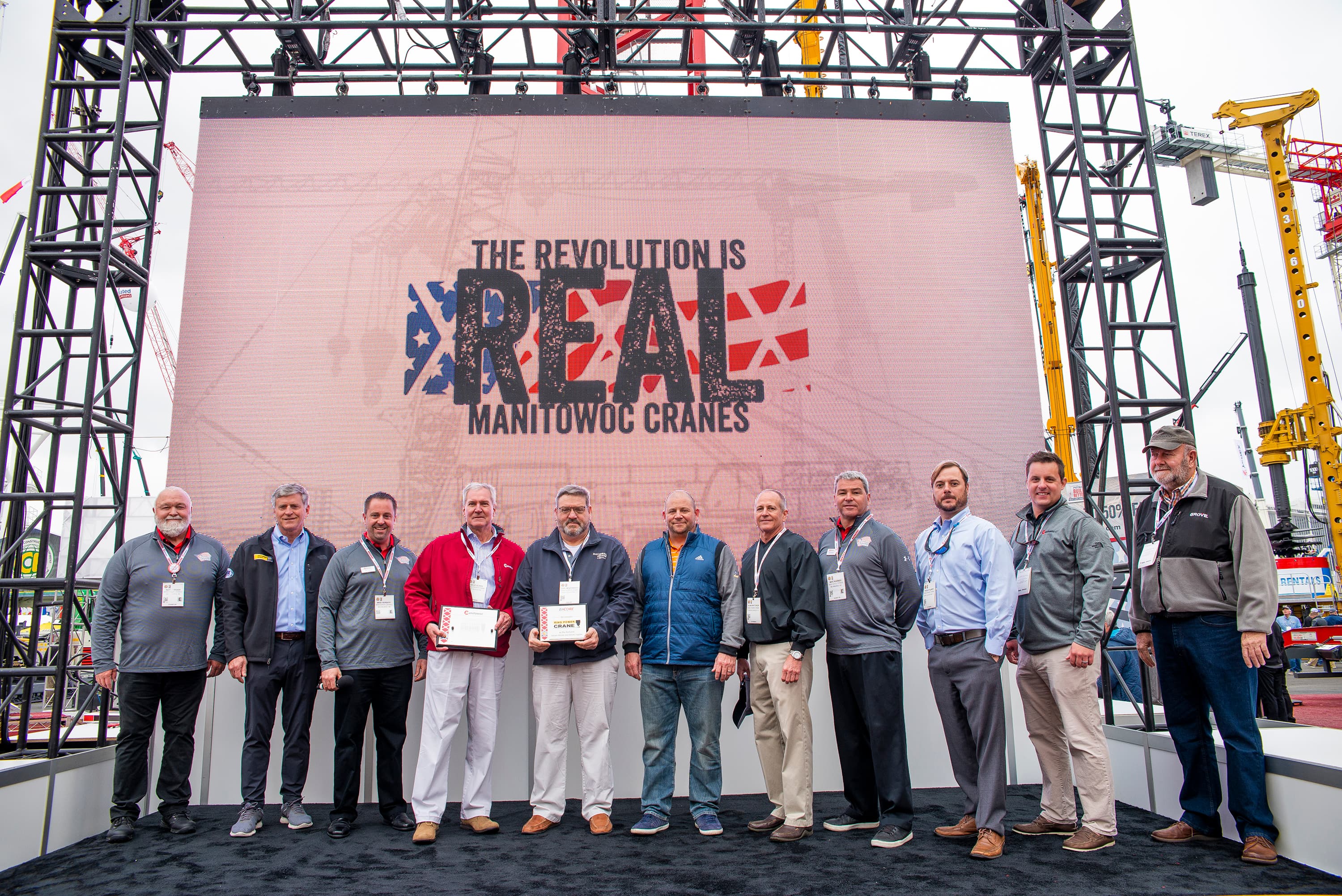 David Alban (President), Kevin Robbins (EVP, Sales), and Dave Glass (VP, Crane) received the award at the Manitowoc booth. Manitowoc’s Keith Crider and Mike Herbert presented them with celebratory plaques to mark the occasion, kicking off what has already been a fruitful CONEXPO for Manitowoc.