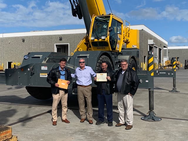 L-R: Mark Buter (Tampa Crane Sales), Dave Glass (WCC Crane GM), Tony Alonso (Orlando Crane Leadman), Karl Minzenberg (WCC Crane PSSR), Italian leather Manitowoc jackets were presented by Manitowoc in appreciation and recognition for their promoting and supplying great support for both Ring Power Crane and Manitowoc.