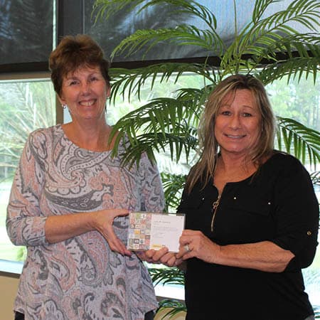 Julie Armold (WCC Credit Collector), right, receiving her award from Carol Butterfield for completing 1 year of service Sept. 30.