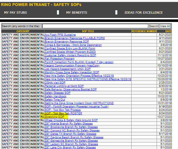Please note that the new Safety SOP on stretching has been published in the Safety SOPs section on the Ring Power intranet. This document incorporates the feedback we received from the leadership. Click here to view.