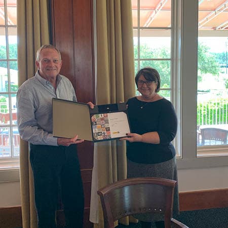 Diane Coon (WCC Project Admin Analyst), right, receiving her award from Paul Goschke for completing 15 years of service Aug. 1.