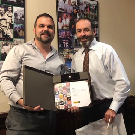 Paul Valanti (Daytona HE Branch Manager), right, receiving his award from Sean McKillip for completing 30 years of service Sept. 4.