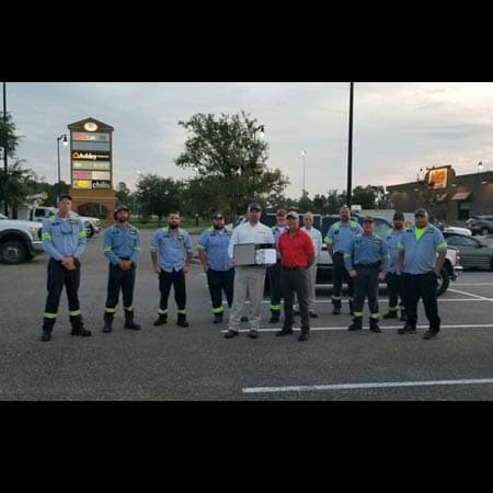 Michael Podbevsek (Jax Pecan HE FS Foreman), center, receiving his award from Chris Green for completing 15 years of service Aug. 15.