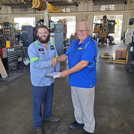 Ben Ritter (Jax LT Service Tech III), right, receiving his award from Rusty Davis for completing 1 year of service Aug. 12.