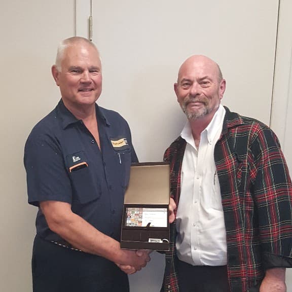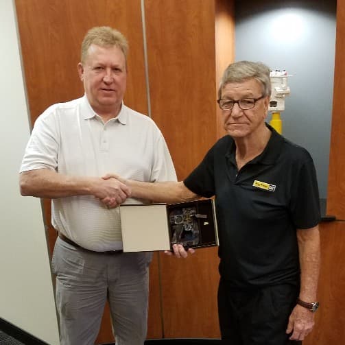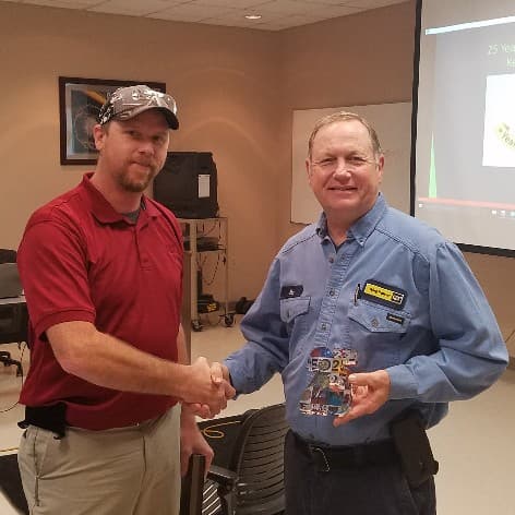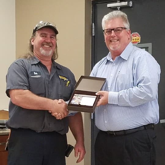 John Kilgore (Pecan Park Truck PSSR) on the left, receiving his award from Dan Leach for completing 30 years of service Dec. 11.