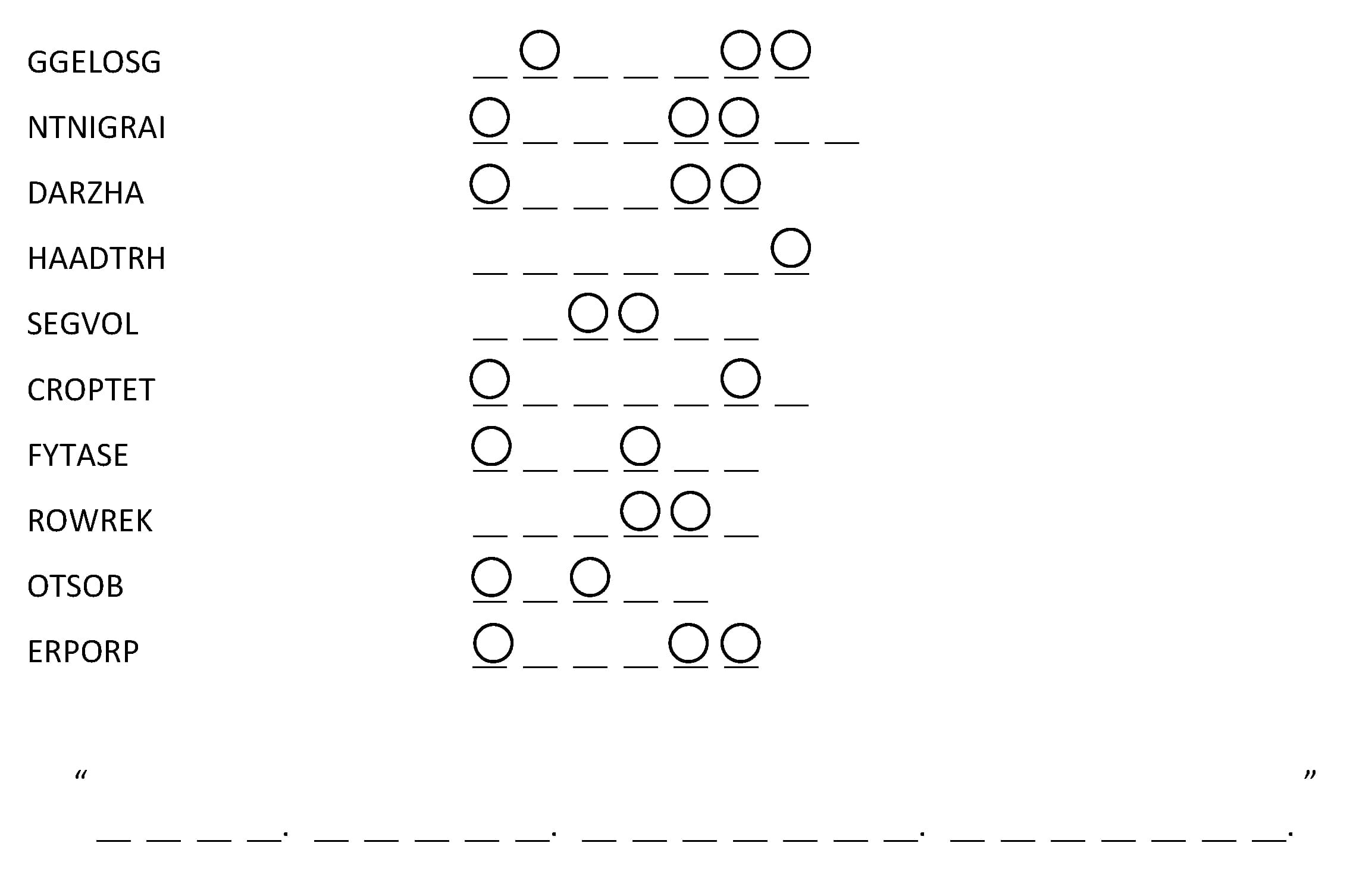 Unscramble all 10 of the safety-related words listed below. Then use the circled letters to decipher the hidden safety reminder at the bottom of the page.