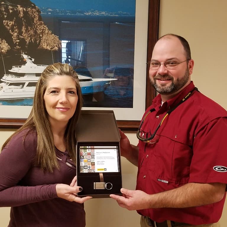 Marian McDaniel (Tallahassee PSD Service Administrator) receiving her award from Clint Bull for completing one year of service Feb. 27.