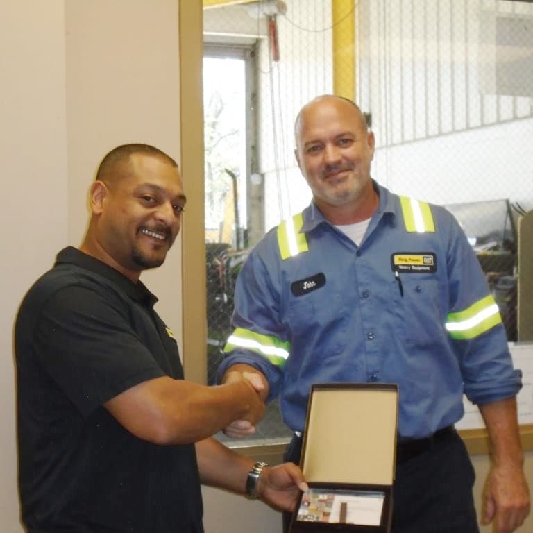 Dan Dillon (Sarasota HE Parts Inside Sales Advisor) on the right, receiving his award from Richie Bigi for completing five years of service Jan. 2.